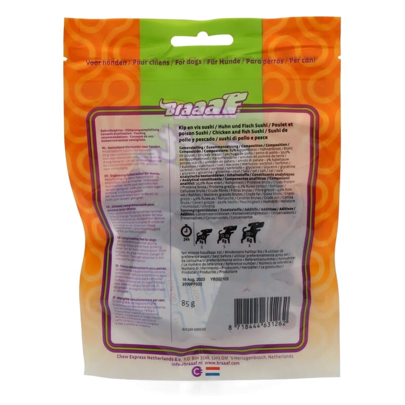 • Braaaf Sushi Chicken & Fish 85g