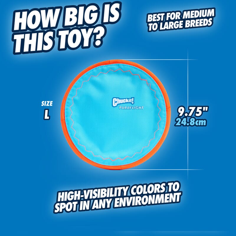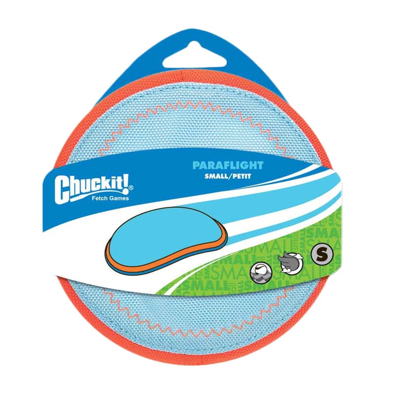 Chuckit! Paraflight er en frisbee laget for morsom og aktiv apportlek. Den spesielle utformingen gjør at den flyr i en jevn bue, noe som gir hunden en ekstra utfordring når den skal fange den i lufta.