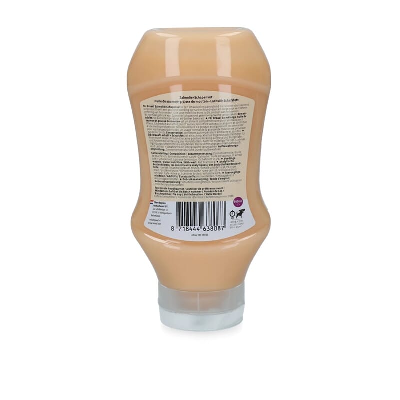 Utfyllende naturlig fôrtilskudd for hunder og katter i 2 smakfulle varianter. Dette er den supersmakfulle lakseolje med sauefett versjon! Kommer i en hendig klemmeflaske.