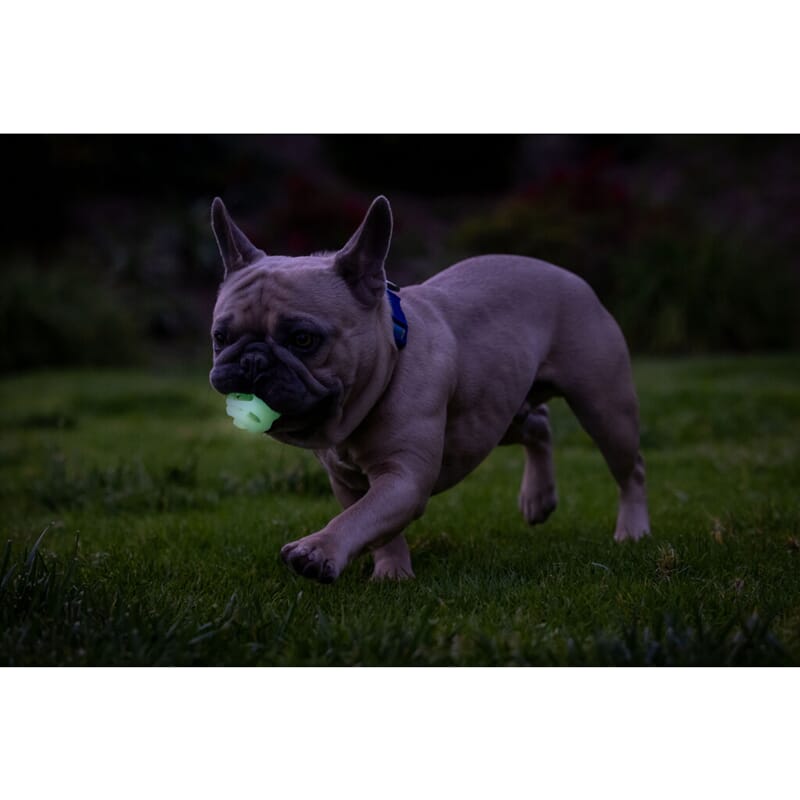Det spesielle materialet lyser i mørket, noe som gjør apportering om natten også mulig.