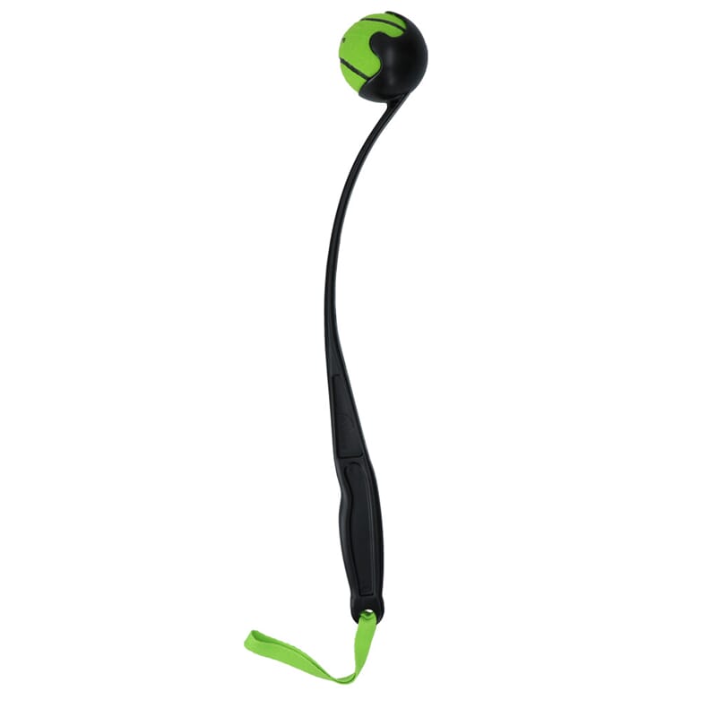 Gjør deg klar for et intergalaktisk eventyr med denne ultimate tennisballkasteren! Denne kasteren vil få hunden din til å løpe og hoppe med mer entusiasme enn noen gang før. Med ett kast kan du uanstrengt sende ballen flyvende meter unna, til og med opptil tre ganger lenger enn med en standard kaster. Ideell for å holde hunder sunne og i form! Kasteren er laget av sterkt og slitesterkt materiale, noe som sikrer at den vil vare i årevis. Takket være den praktiske formen kan baller enkelt plukkes opp fra bakken og kastes igjen umiddelbart. Inkluderer en Dog Comets tennisball.