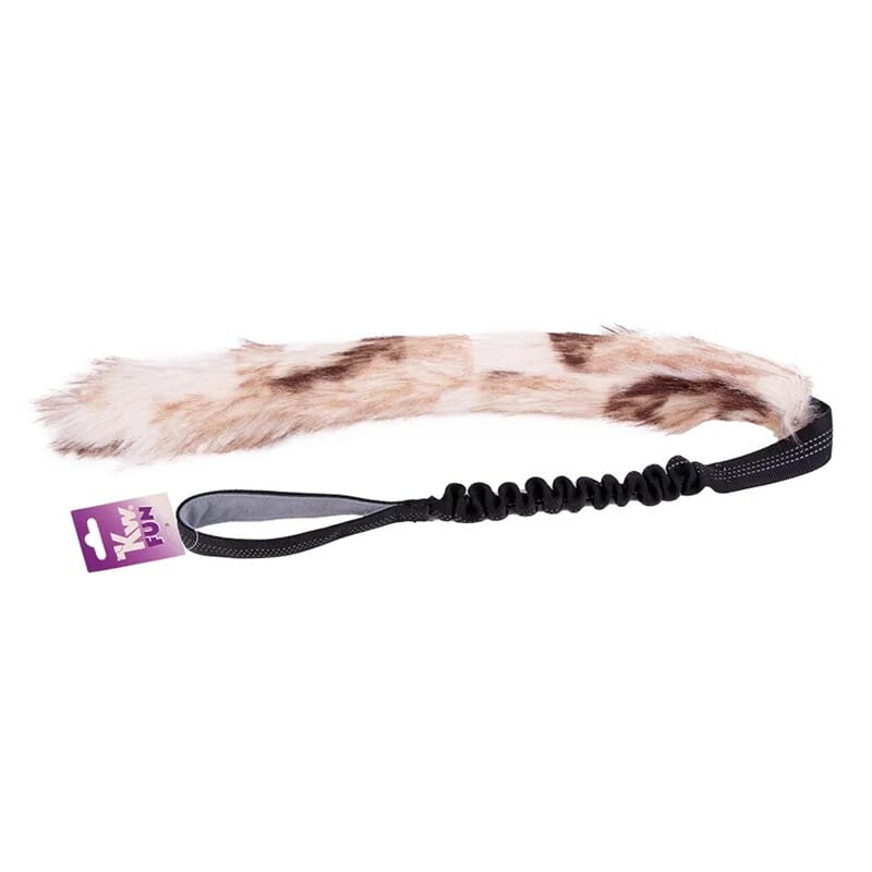 Den ene enden har et håndtak du kan holde i, mens den andre enden har et leketøy eller en gjenstand som hunden din kan jage, dra eller leke med.