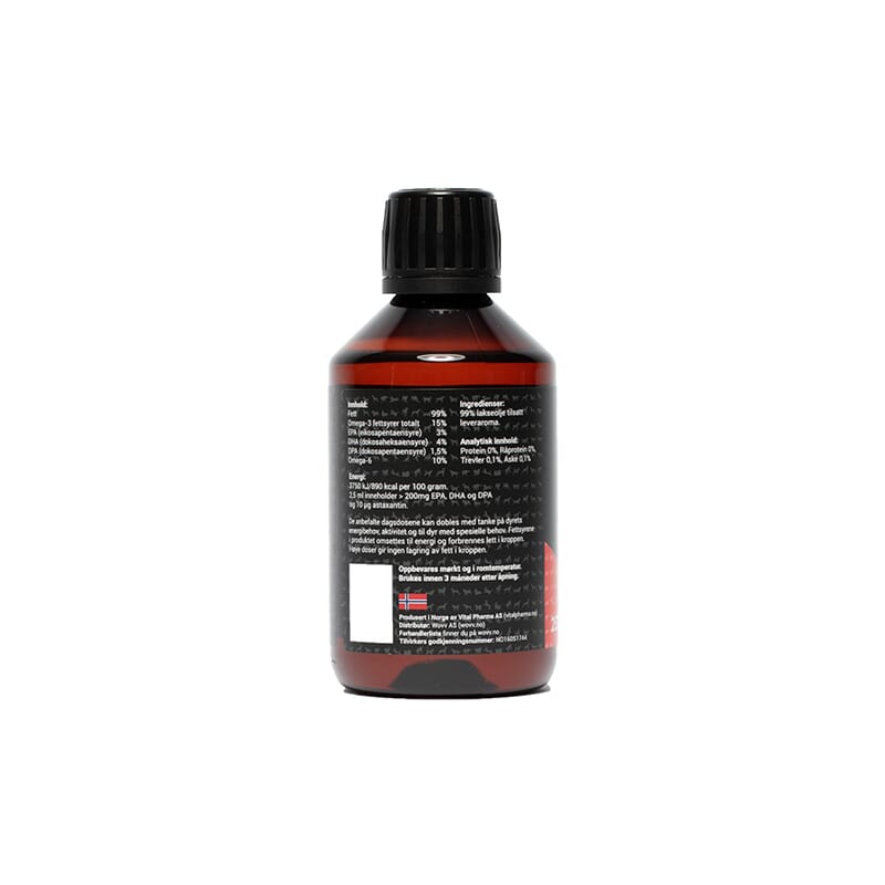 Wovv Lakseolje med leversmak og masse omega fettsyrer. Denne olje gir kresne hunder og katter matlysten tilbake! Kan gies alene eller oppå tørrfôr/våtfôr. Lakseolje i samme kvalitet som omega mennesker, tilsatt deilig smak av lever som hunden/katten vil elske.