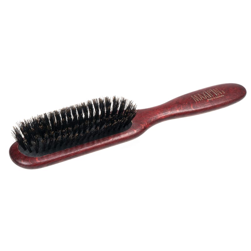 Avlang børste med naturlig svinebust, utviklet for skånsom pleie av pels. Børsten bidrar til å fordele naturlige oljer i pelsen og gir et velstelt og glansfullt resultat.