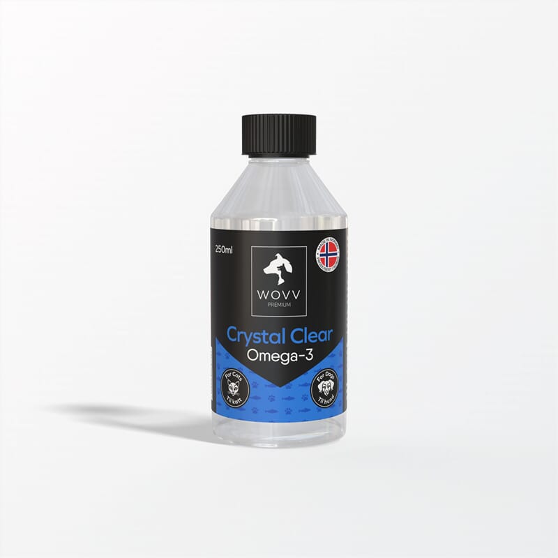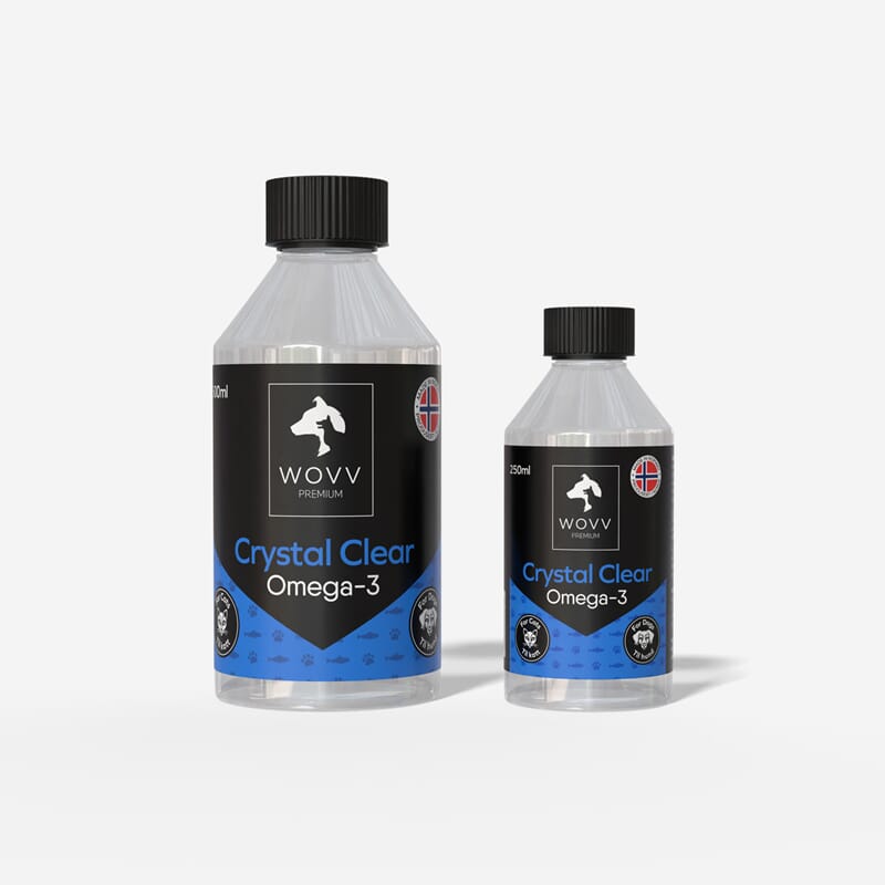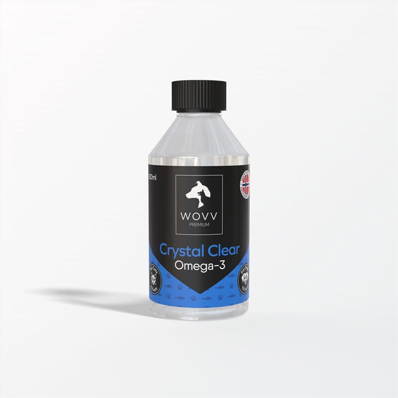 Vår Crystal Clear Omega-3 fiskeolje er spesielt formulert for å være fargeløs og flekkfri, noe som gjør den perfekt for dyr med hvite eller lyse pelser.